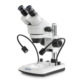 KERN OZL 47 stereomikroskop levereras med 2 flexibla 3W LED-lampor, så att du alltid har rätt belysning från rätt vinkel. Mikroskopet har en lättjusterad 7-45x steglös zoom. HWF (High Wide Field) okular säkerställer att du enkelt kan arbeta längre perioder med mikroskopet utan att belasta dina ögon för mycket, och är också lämpligt för glasögonbärare.