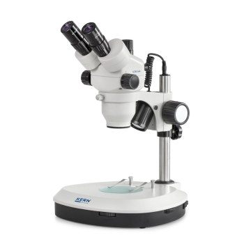 KERN OZM 5 stereomikroskop för professionellt bruk. De högkvalitativa HSWF (high super wide field) okularen gör mikroskopet lämpligt för långvarig användning utan att belasta ögonen för mycket, och är också väl lämpat för användare med glasögon. Med kontinuerligt justerbar zoom från 7 till 45x och en arbetshöjd på 110 cm (maximalt provhöjd 130 cm) är detta mikroskop lämpligt för många olika användningsområden.